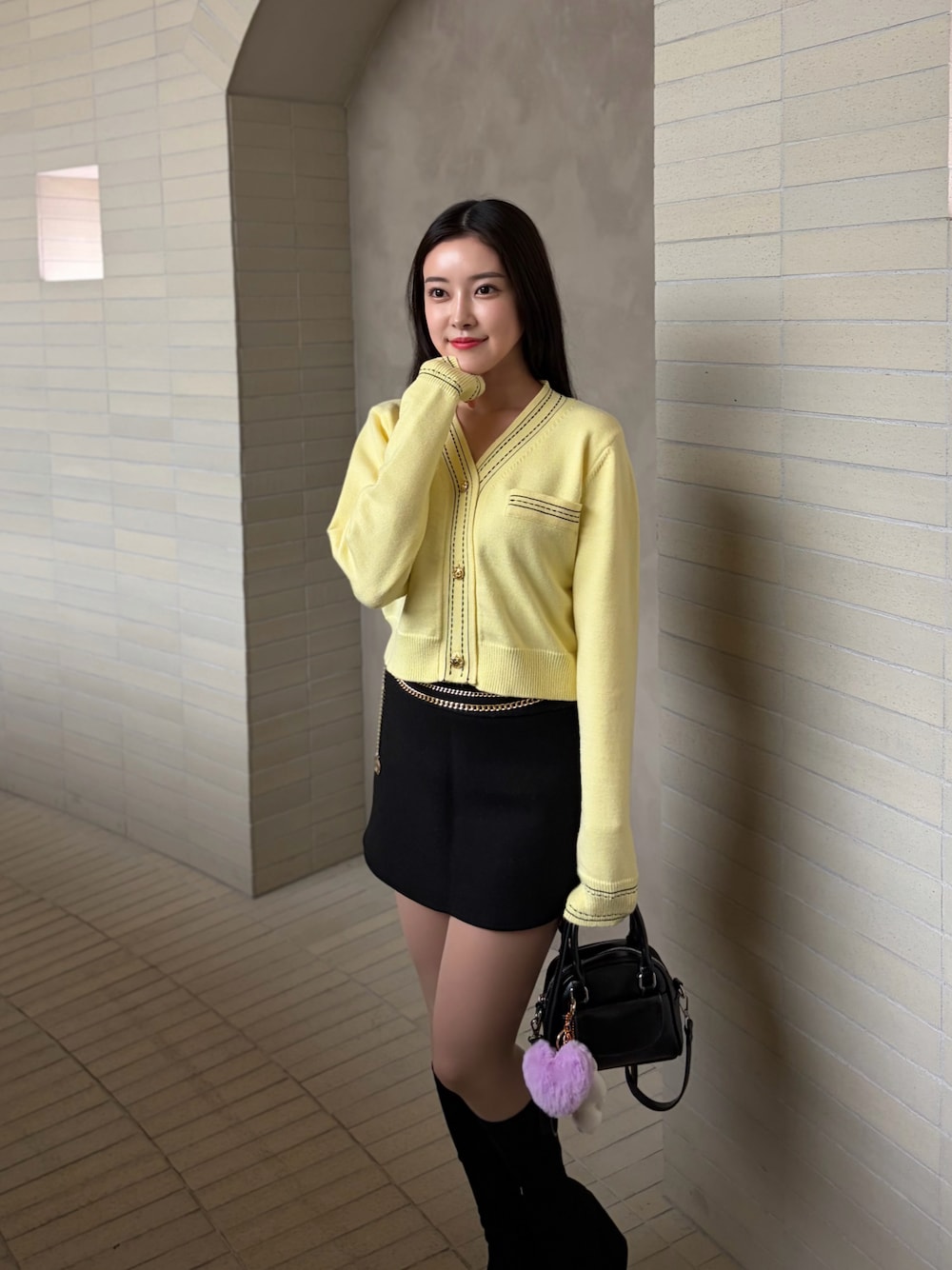 袖の黒ステッチが珍しいの🥺チクチクしないニットで着心地抜群だから、今年の春は沢山着たいな〜!