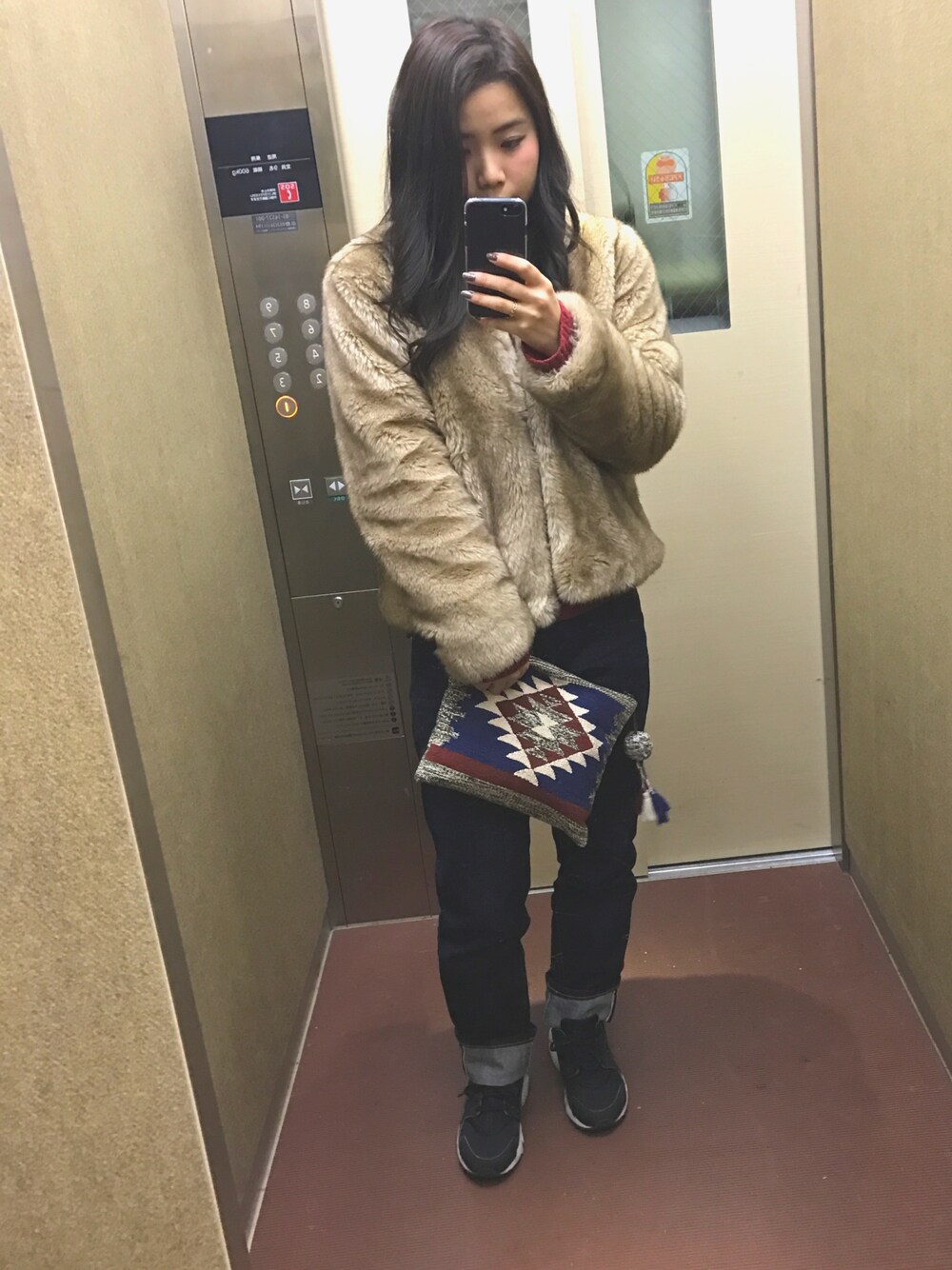 narumi のノーカラージャケット「ショートフェイクファーコート」を使ったコーディネート