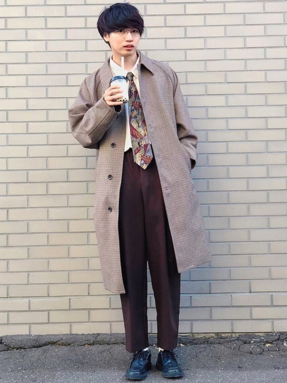 風早ゆうたのステンカラーコートを使ったコーディネート