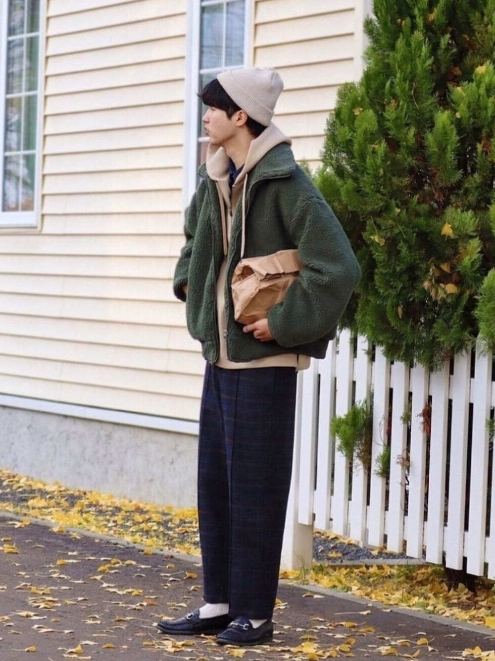 men's fashion🇬🇧 『少し野暮ったいが丁度良い。』 ベージュやカーキといったミリタリーチックで野暮ったいカラーだけど、足元にはローファーといった締まりの良いアイテムを取り入れることで程よいアクセントに◯ ボアジャケットは安定の可愛さがあるのでカラバリ豊富に持ってるとコーデ幅広がります。 パンツは14日発売もので汎用性が高いアイテムですので要チェックです🤭 お気に入り(+)してくれると嬉しいです🔥🔥 —————————————————— CONTACT Instagram: yuta1116nn プロフィールからも飛べます✈️ お仕事の依頼など問い合わせなど御座いましたらInstagramのDMにご連絡頂けますようよろしくお願い申し上げます。 ——————————————————