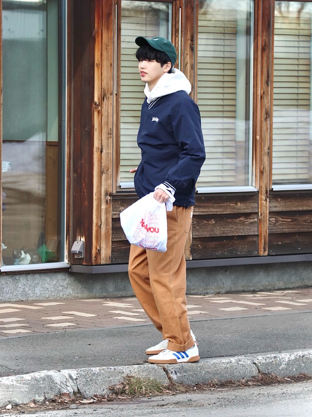 風早ゆうたのブルゾン「【ZIP FIVE】デイリーユースジャガードロゴ切替ナイロンプルオーバージャケット」を使ったコーディネート