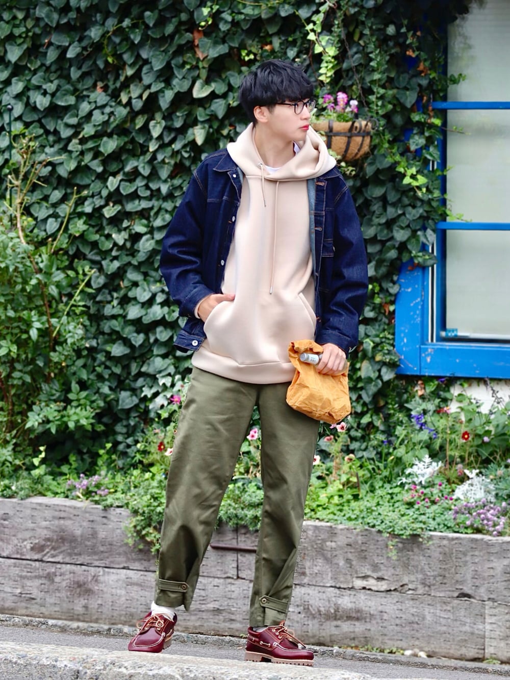 風早ゆうたのデニムジャケット「【コットンUSA】ビッグシルエット ドライタッチ デニムジャケット/UNISEX」を使ったコーディネート