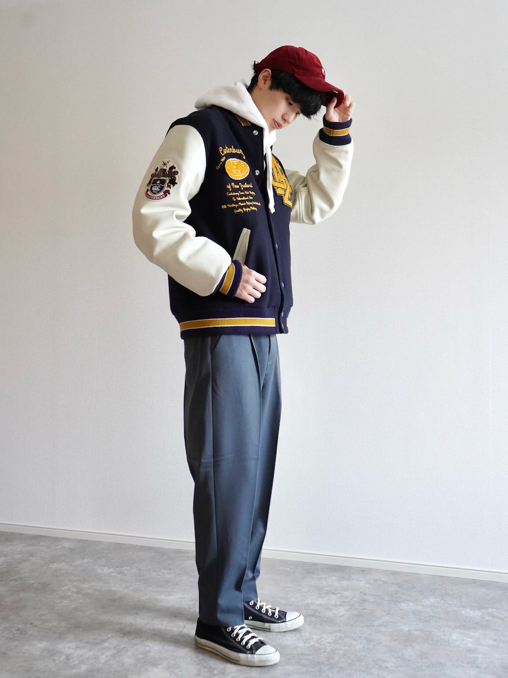 スタジャンで作る キレイめカジュアルスタイル カジュアルなスタジャンに キレイめアイテムのスラックスを 合わせて品良く仕上げました😊✨ 〜〜〜pickup item〜〜〜 □jacket□ カンタベリーのジャケット。 Amazonで購入可能。 □pants□ 22ss 新作アイテム。 センタープレス入りで キレイに見えるシルエット。 〜〜〜〜〜〜〜〜〜〜〜〜 お気に入り(+)してくれると嬉しいです —————————————————— CONTACT Instagram: yuta1116nn プロフィールからも飛べます✈️ お仕事の依頼など問い合わせなど御座いましたらInstagramのDMにご連絡頂けますようよろしくお願い申し上げます。 ——————————————————
