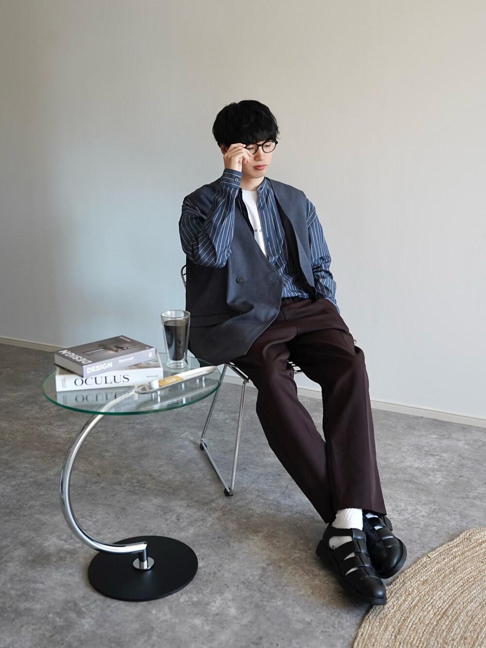 大人シックな着こなし 落ち着いた色味で統一することで 大人雰囲気に。 シャツと同系色のジレベストで アクセントの効いたスタイリングに✨ 〜〜〜pickup item〜〜〜 □vest□ 22SS新作。 オーバーサイズのベストで ジャケット感覚で羽織れる斬新アイテム。 〜〜〜〜〜〜〜〜〜〜〜〜 ——————————————————— CONTACT Instagram: kazehaya_yuta プロフィールからも飛べます✈️ お仕事の依頼など問い合わせなど御座いましたらInstagramのDMにご連絡頂けますようよろしくお願い申し上げます。 ———————————————————