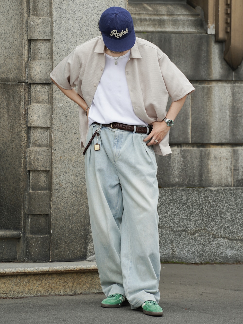 風早ゆうたのシャツ/ブラウス「シンセティックツイード オーバーサイズ イージーケア 半袖シャツ」を使ったコーディネート
