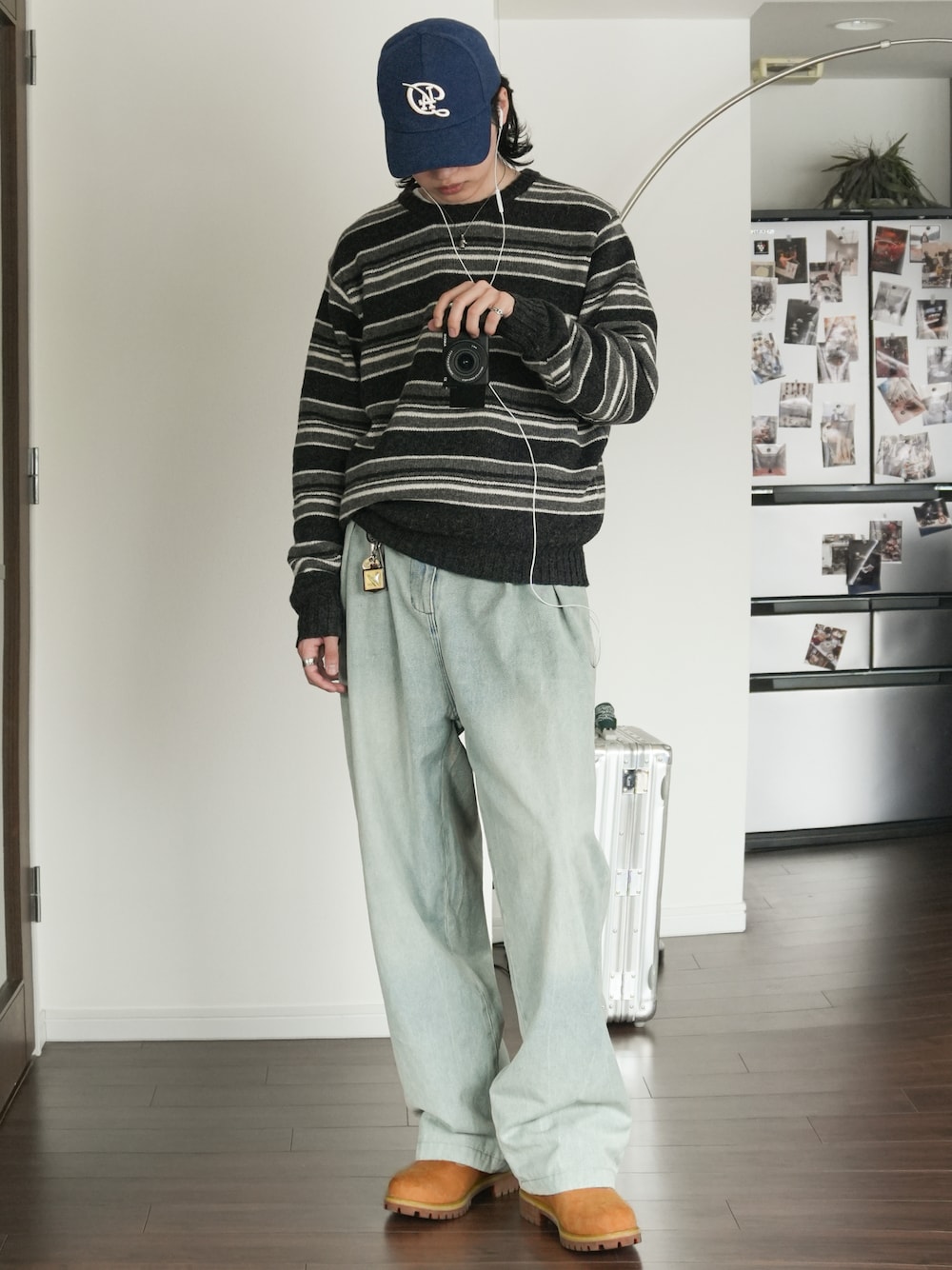 風早ゆうたのデニムパンツ「ヘビーツイル ワイドストレート ダブルインタック グルカチノパンツ / ヴィンテージ加工 グルカデニムパンツ」を使ったコーディネート