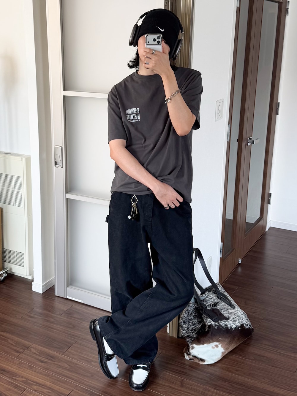 風早ゆうたのチノパンツ「19oz ヴィンテージ加工 ワイドストレート 高密度ペインターダックパンツ」を使ったコーディネート