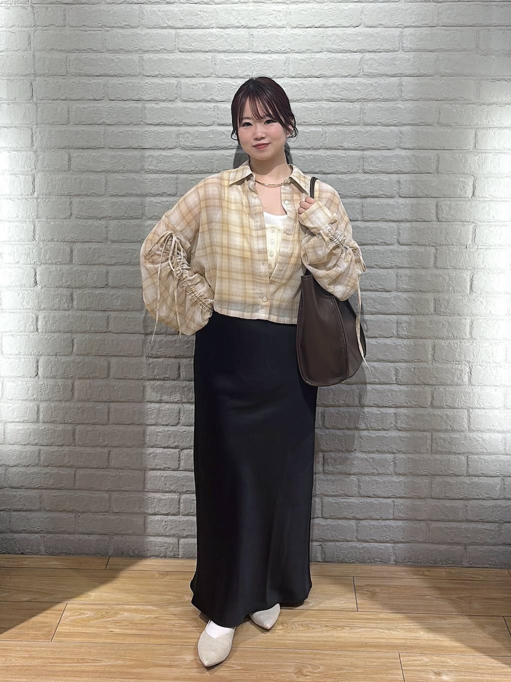 シアー感があり、腕のくしゅくしゅデザインのふわっと感がかわいいチェックシャツです👗🫶