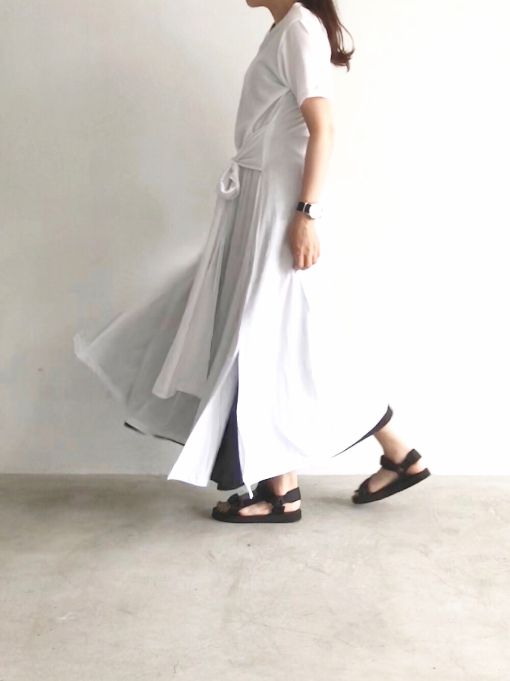 coco@のワンピース「ウエストリボン半袖カットソーワンピース」を使ったコーディネート