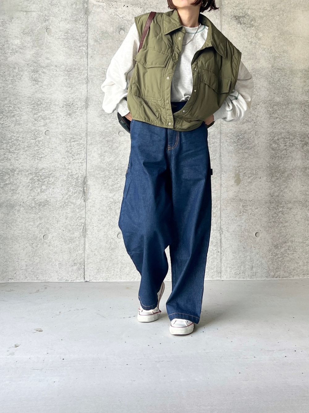 coco@のデニムパンツ「ハイウエストワイドストレートペインターパンツ」を使ったコーディネート