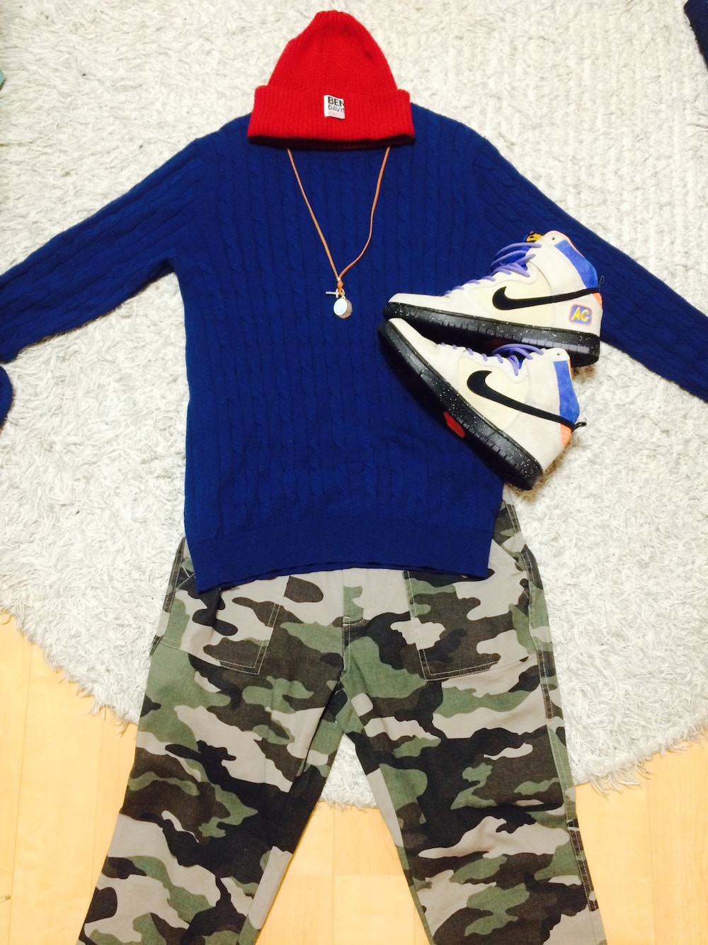 前回とほぼ同じですがこっちのほうが落ち着いてていいかもと思いました笑 もちろん中にシャツきたりしてもいいですよね! ケーブルニットのセーターは男もんです✌︎︎