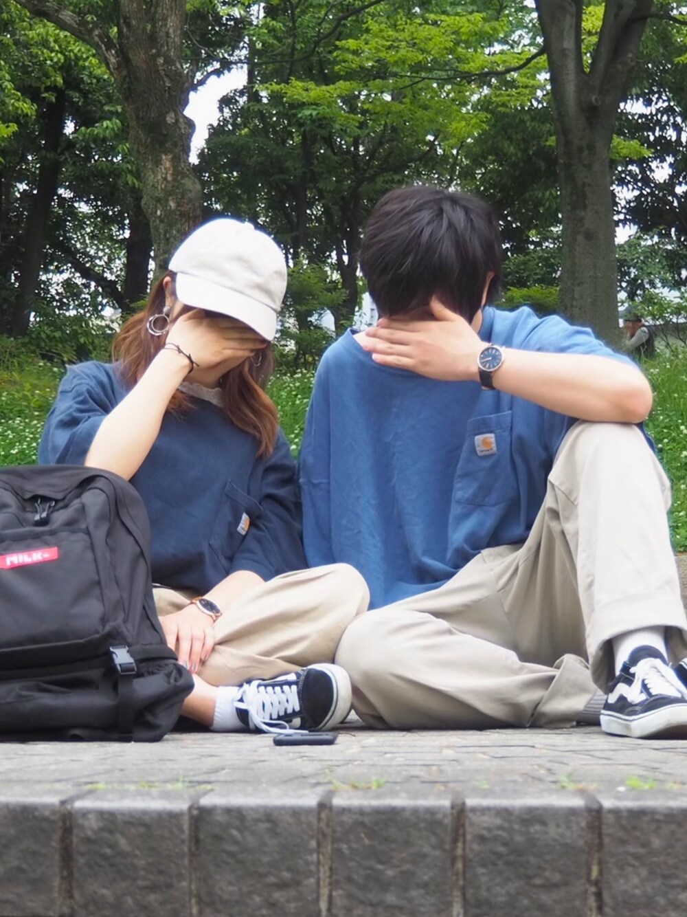 お久しぶりです◎ 彼氏くんと撮ったシミラールックですˎˊ˗ Carhartt × チノパンで合わせました! シミラールックってなんだか恥ずかしいけど嬉しいですよね💭💭