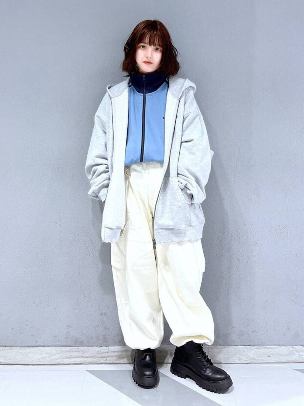 ナスちゃん(GLOBAL WORK イオンモール大日)のパーカー「【SIGNAL SPORTS】裏毛/ジップヘビーウェイトダメージスウェットパーカー」を使ったコーディネート