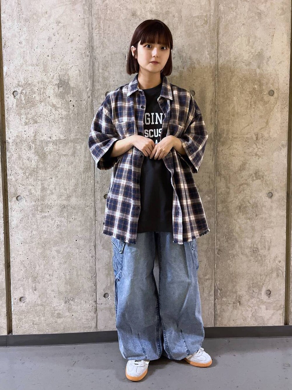 ナスちゃん(GLOBAL WORK イオンモール大日)のデニムパンツ「DENIM CARGO PANTS / デニムミリタリーカーゴパンツ/パラシュートパンツ」を使ったコーディネート