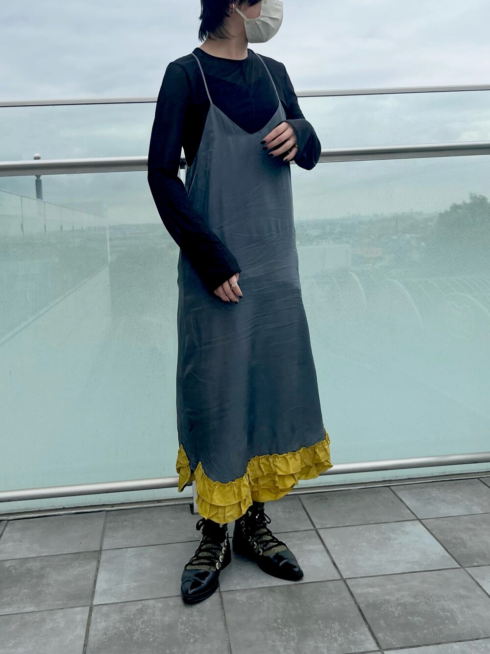 7.のワンピース「TOGA PULLA フリルインナードレス」を使ったコーディネート