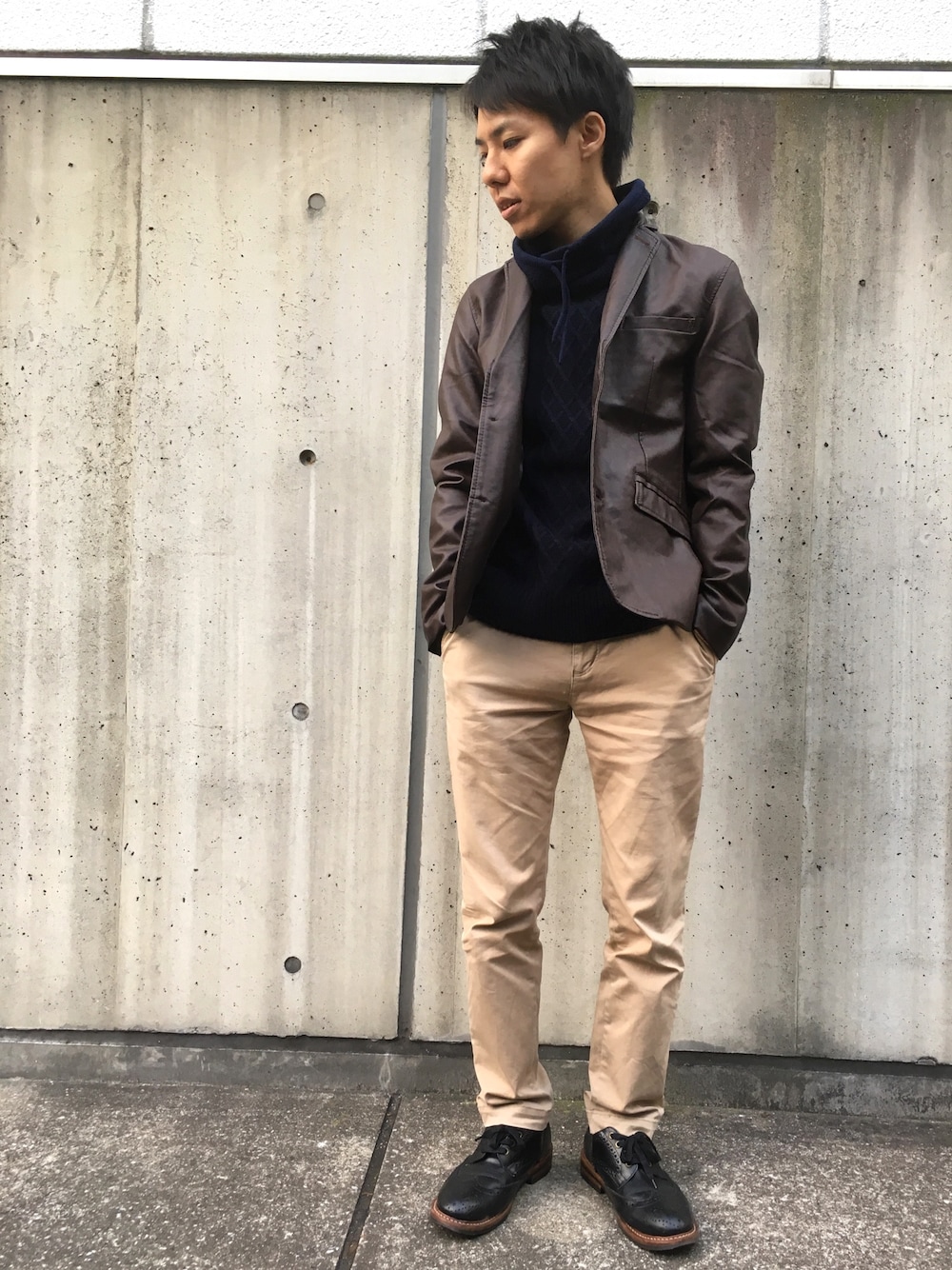 ぎりけんのテーラードジャケット「003 J.FERRY ウォッシュレザーテーラードジャケット」を使ったコーディネート