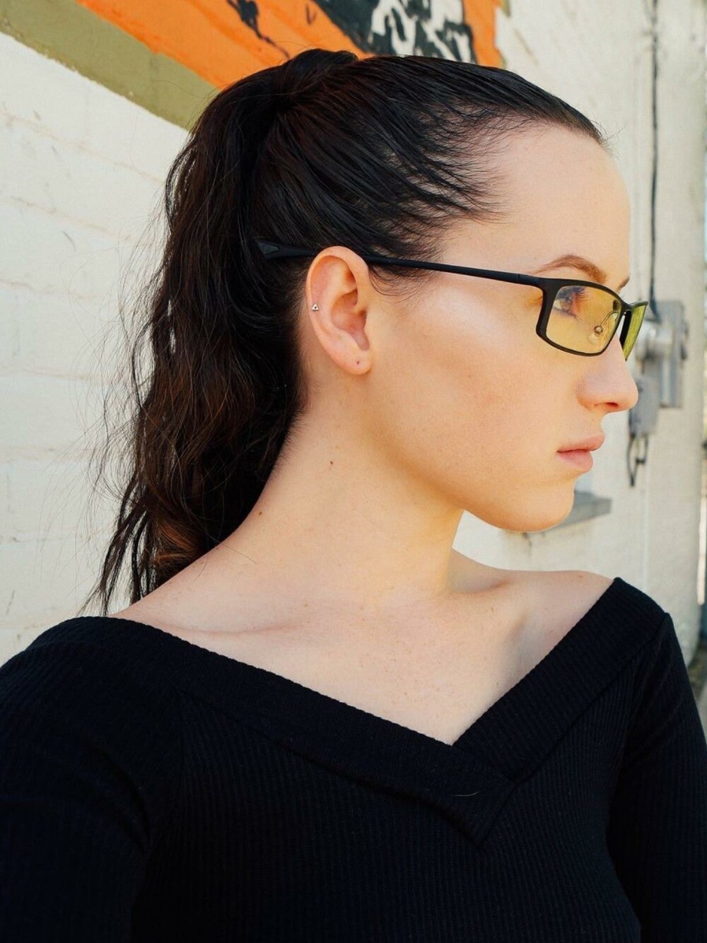 ブラック系のサングラスを着用したレディースの春コーディネートの1枚目の写真