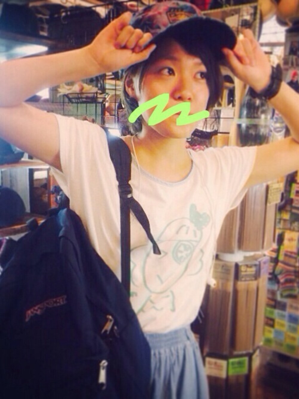 先輩のバイト先(帽子屋さん)に突撃した時のです 行くなり、先輩から「誕生日プレゼントまだだから好きなの選んでいいよ〜!」と大盤振る舞いを受け うんうん悩んだ結果、このキャップになりました。 お花が上品でありやんちゃっぽいキャップ かなりお気に入りで合わないコーディネートにも被りたくなってしまうほど。 太っ腹な先輩には感謝しかないですね 大切にしようと思います。 それにしても暑い、毎日、暑い 浴衣着たい!!!!!!