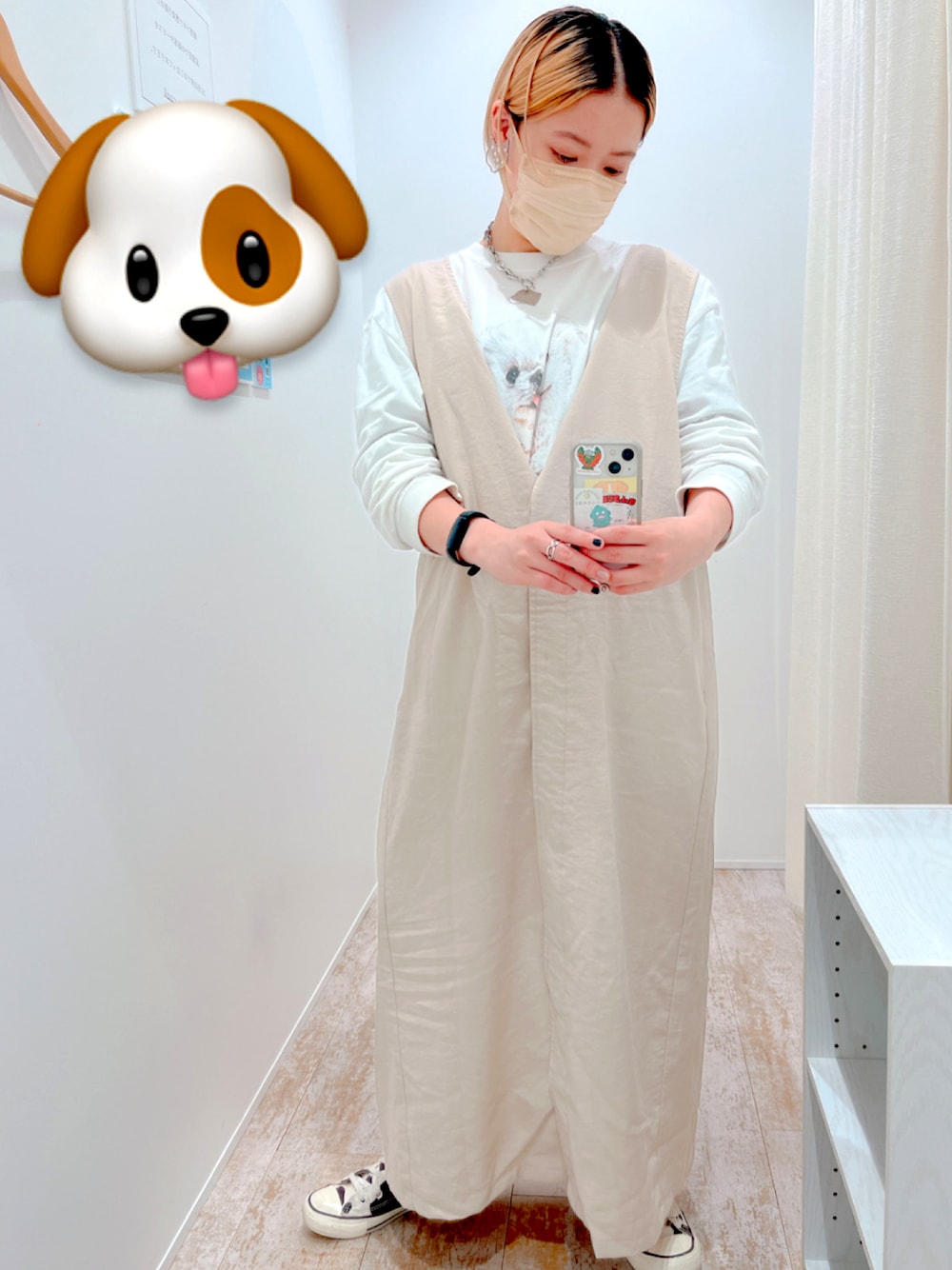 ムーチョロンTが ひょっこり覗いてるコーデ ムーチョはペキニーズの男の子です 𝑩𝑰𝑮 𝑳𝑶𝑽𝑬______ このワンピがまじで優秀 ゆったりだけど綺麗なシルエット Tシャツもシャツも 恐らくニットもいけそう これは万年ワンピになりますな… 髪の毛の根元残しがだいぶ伸びてきた! 10日後に美容院だ〜早く行きたい〜