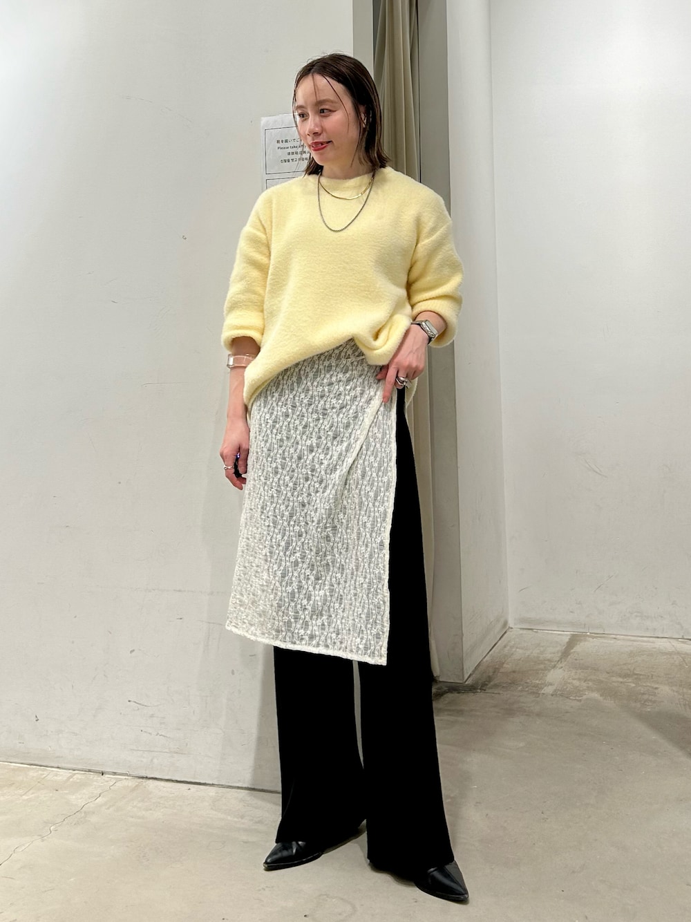 ◎普段着用サイズ トップス M ボトムス S・M トップス▶︎今回着用サイズ M 柔らかで、ふわふわとしたニット。チクチクせずに着心地も良い◎ゆったりしていておしりにかかる丈感。パンツにもスカートにも合わせやすく、ボトムス次第でカジュアルにもキレイめにもスタイリングしやすい^^ スカート▶今回着用サイズF 軽やかで、レイヤードコーデとして幅広いボトムスに合わせられるレーススカート。ロングシーズン使えてコーデにプラスするだけで、華やかさアップ。 パンツ▶︎今回着用サイズ M 伸縮性のあるリブニットパンツで、ウエストもゴムで楽な着心地。ウエストに紐もあるので調節可能。程よくゆとりがあり、リブが縦のラインをしっかり出してくれ自然とスッキリ見せてくれます◎
