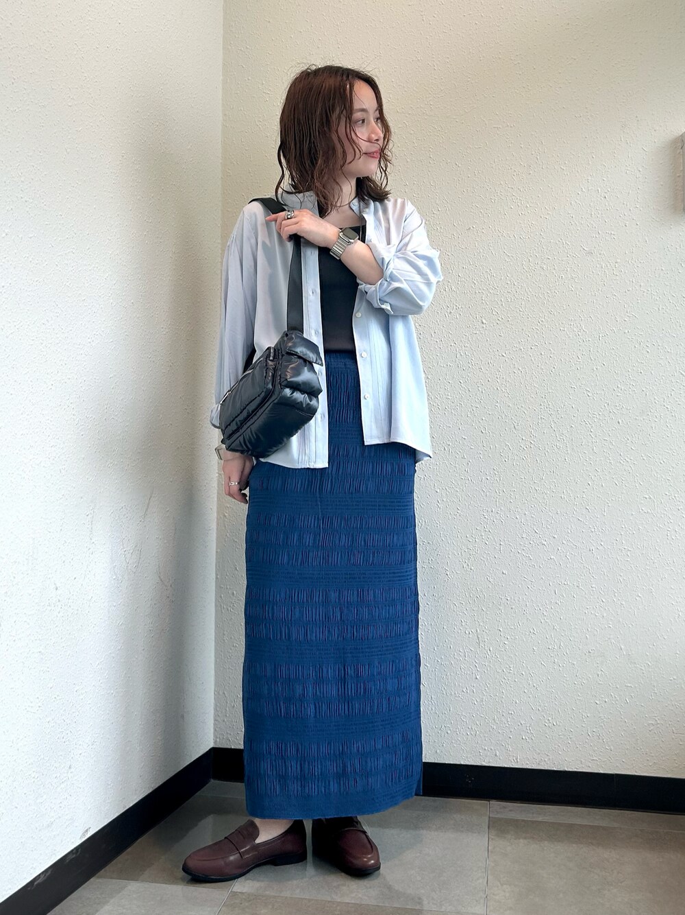 ◎普段着用サイズ トップス M ボトムス S・M シャツ▶︎今回着用サイズ M 柔らかく落ち感のある生地で、広がりすぎずスッキリとした印象に。ヒヤッとした接触冷感素材でサラッとして着心地良い。 スカート▶︎今回着用サイズ M 伸縮性があり、ウエストもゴム仕様で楽な着心地。タイトなシルエットでラインをキレイに見せてくれます。ボリュームあるトップス合わせもスッキリ見えします。