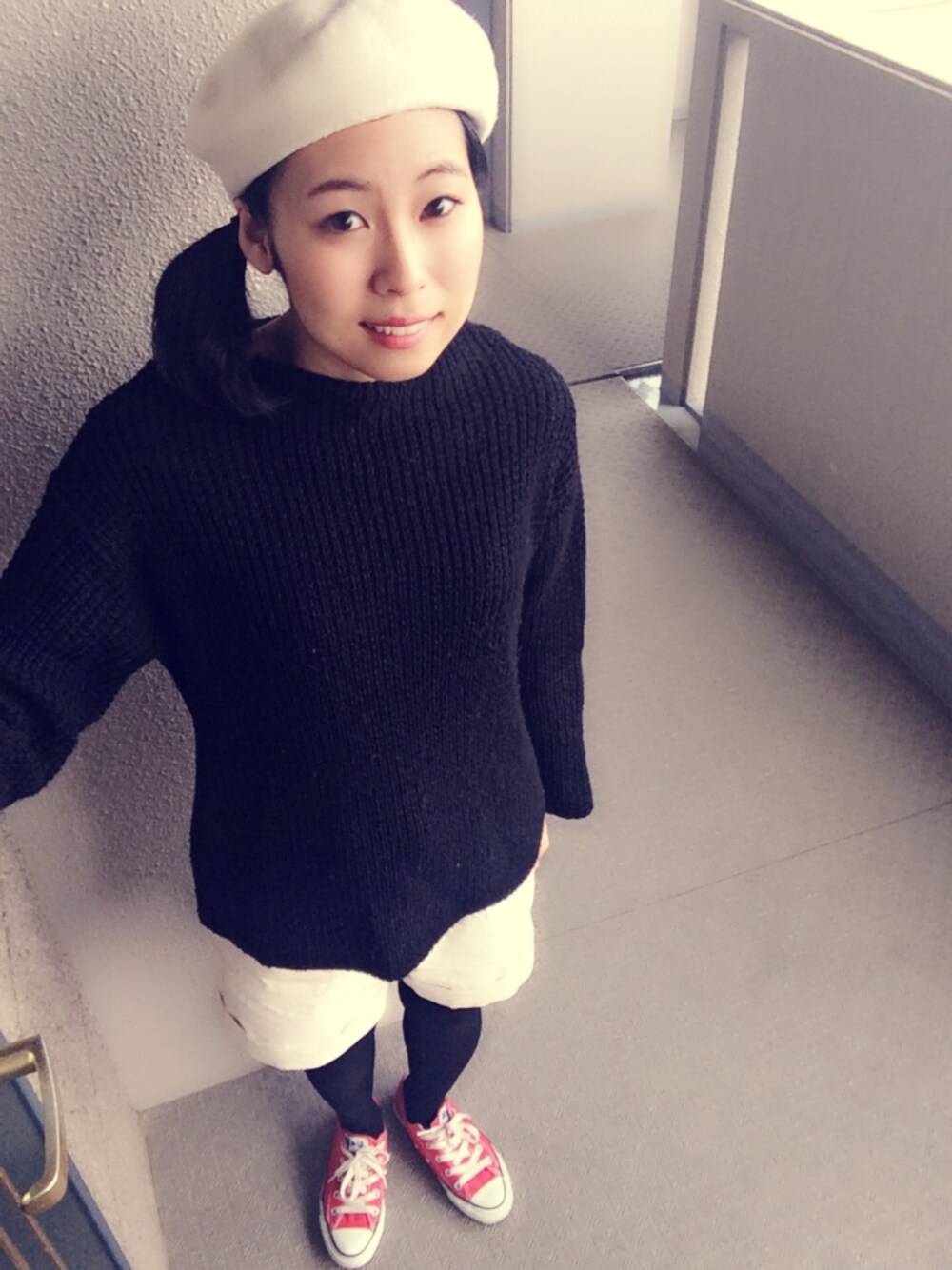 ベレー帽 used ニット nikoand... パンツ nikoand... タイツ 靴下屋 シューズ コンバース