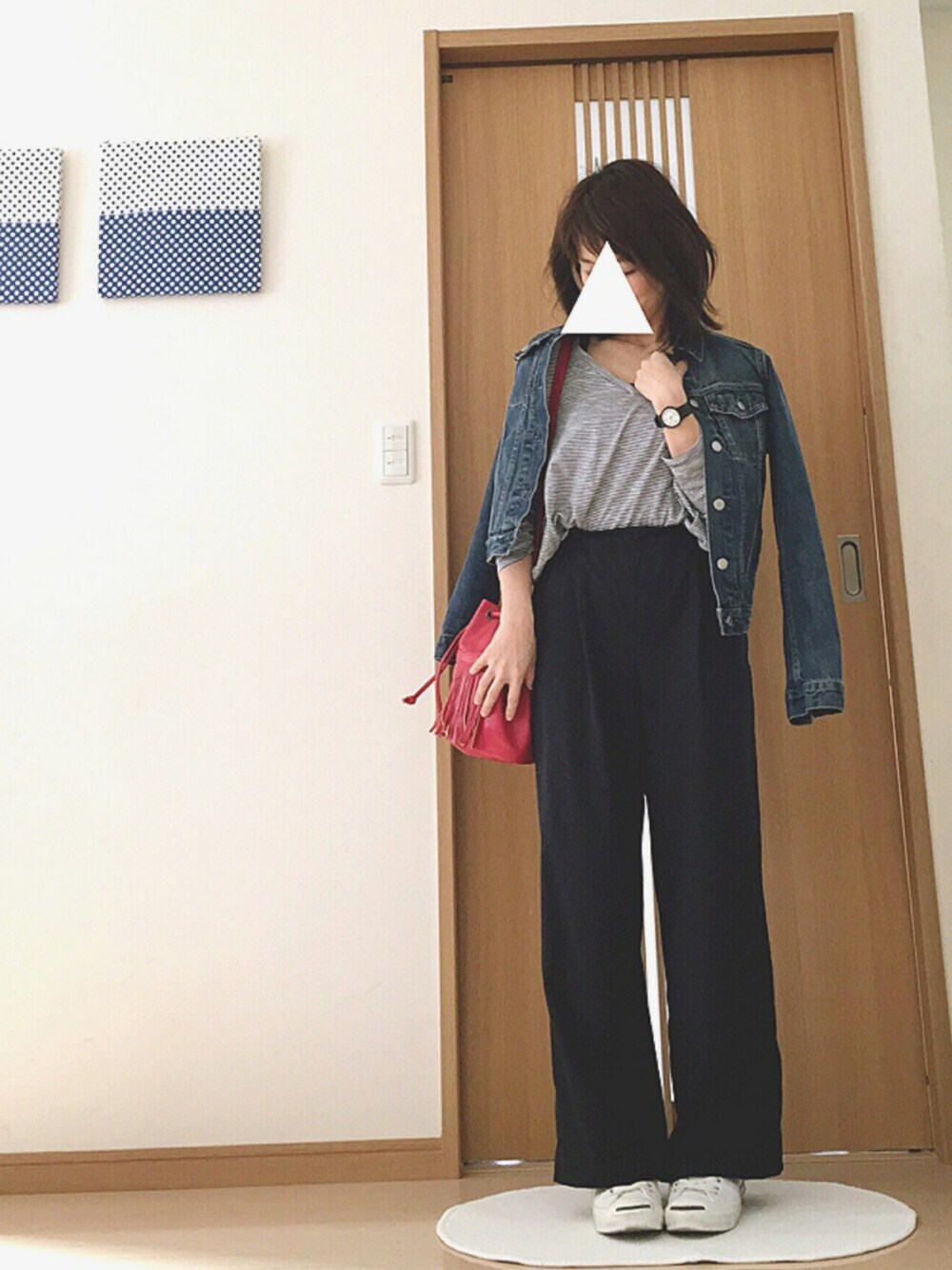 ご覧いただきありがとうございます。 いいねやセーブ嬉しいです! 一見モノトーンに見えるけど、 トップスもパンツもネイビーです😁 トップスはザラのSALEでな、な、なんと 390円🙀🙀🙀 テローンとしたゆったりシルエットの細ボーダーで 全部出しちゃうとだらしない😅 なのでウエスト気になるけどインしちゃいます。 ゆる〜んなトップスと ゆる〜んなパンツで ゆるゆるコーデ💨 デニジャケ肩掛け慣れてなくて すぐずり落ちちゃう人🙋 気になっちゃう人🙋 多分肩掛けは撮影時のみでしゅーりょー💨 今日は桜満開の時のような気候らしい🌸 早く桜見たいなぁ😍 ではではん😙