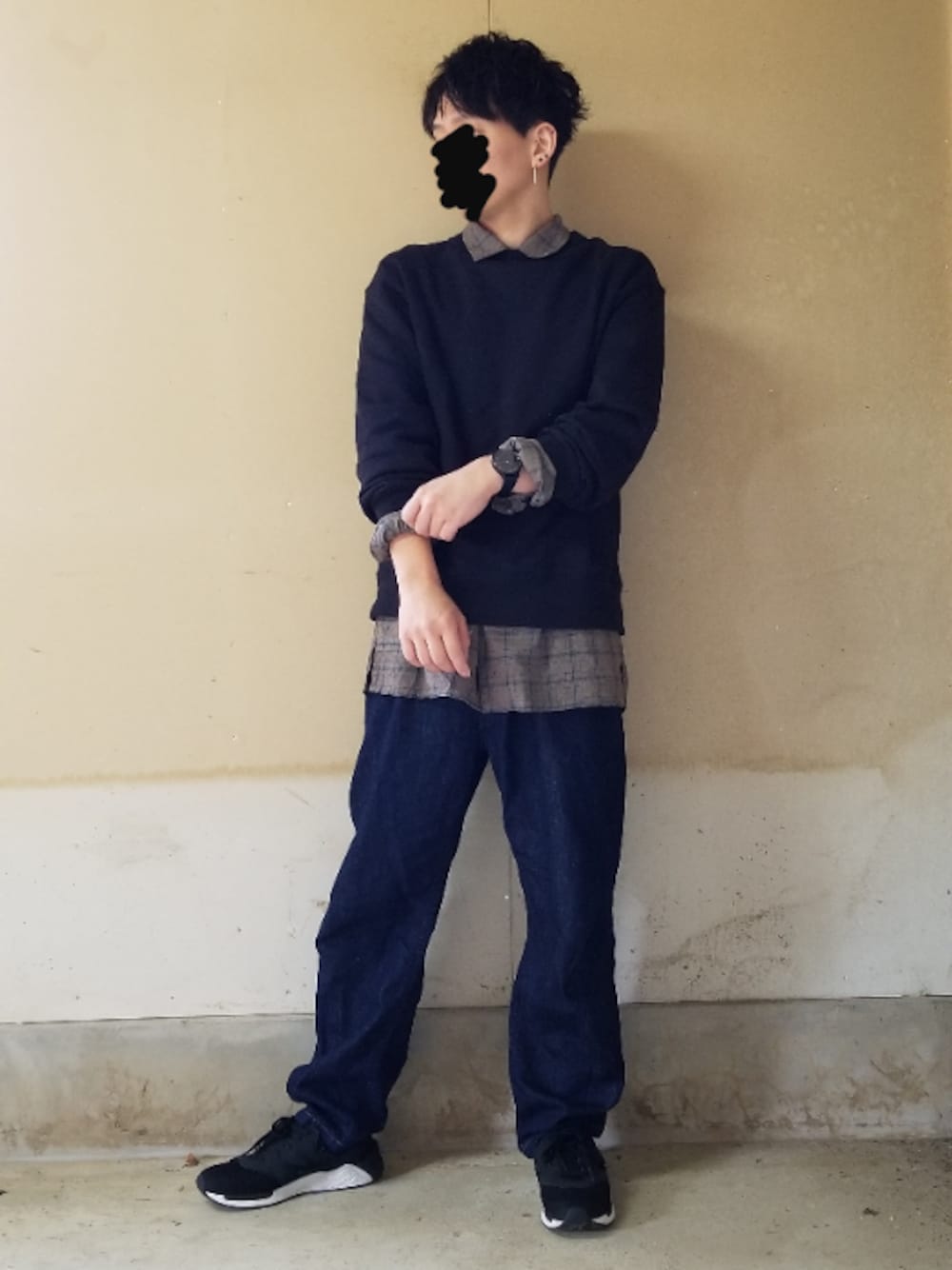 なっちのデニムパンツ「ベルテッドプリーツジーンズ(丈標準70cm)」を使ったコーディネート