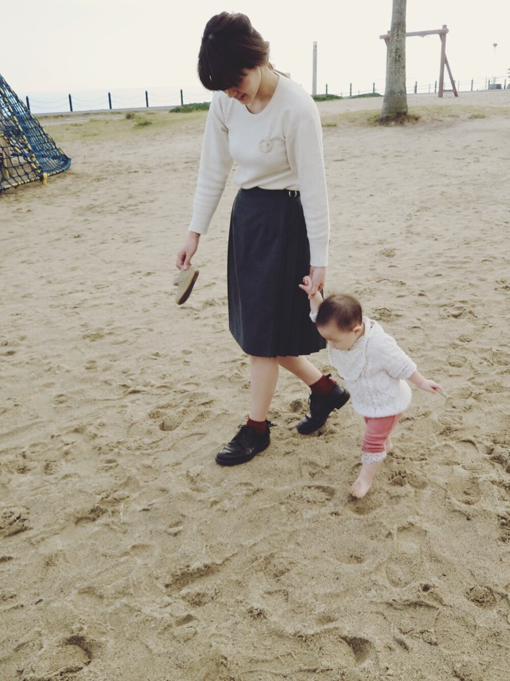 初めてのWEAR。 なんだか難しい、、かも。 みなさんと仲良くなれたらとってもとっても 嬉しいです〜❁ そんな今日は海岸公園に行きました⚐⚑⚐ 初めて来た時は芝生もお砂も嫌で泣いてばかりだったのに、今日は裸足で歩き回りました。 最近手を繋いでくれないのでヒヤヒヤします^^;