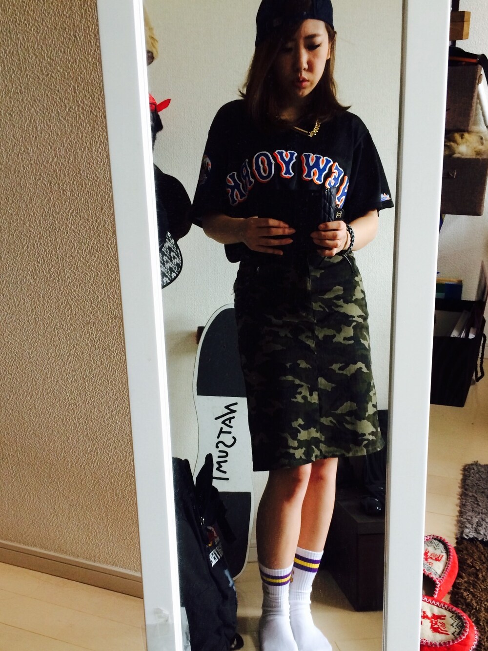 K.natsuのスカート「ストレッチ迷彩フロントボタンタイトSK」を使ったコーディネート