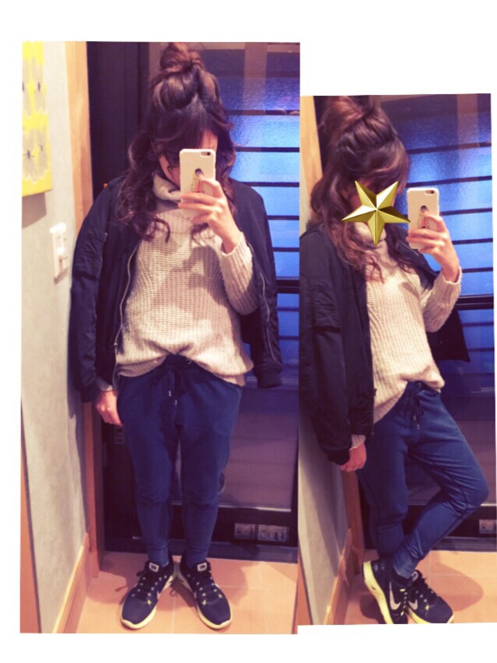 GUのハイネックは、首元がてろんてろんで可愛くないから、内側に折り込んでボリューム出してみましたー GUは1000円台で買いましたー激安