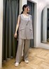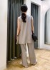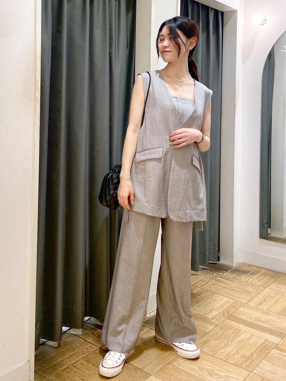 スリーピースをカジュアルめに着てみました。 あえてインナーを着ないでシンプルに着たので、足元はスニーカーを合わせて肌見せのバランスをとりました。