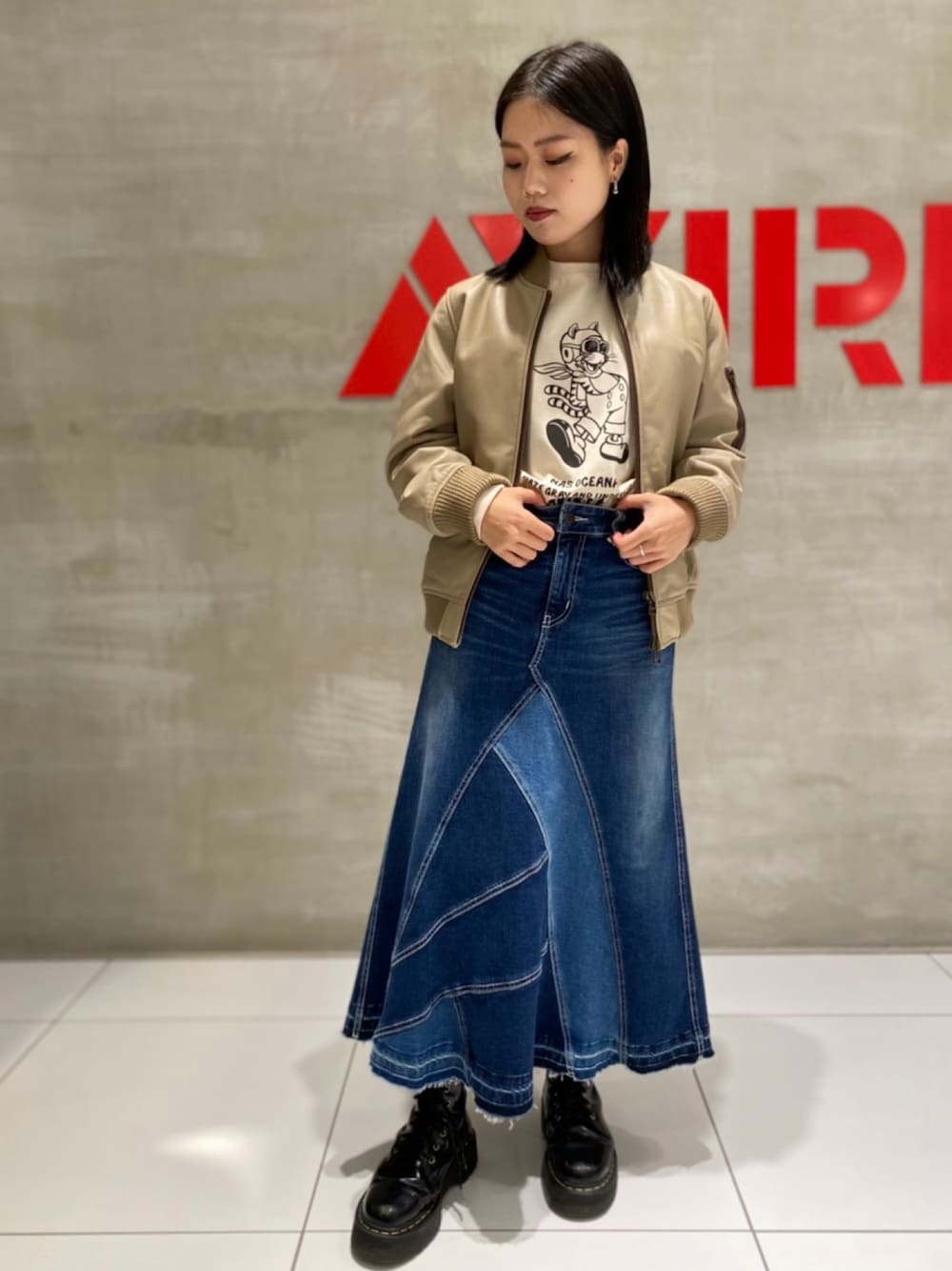 MA-1レザーを使ったコーディネート︎︎︎︎︎︎☺︎ ゆったりしていて着心地最高です◎ スタッフ身長:155cm 着用サイズ:S