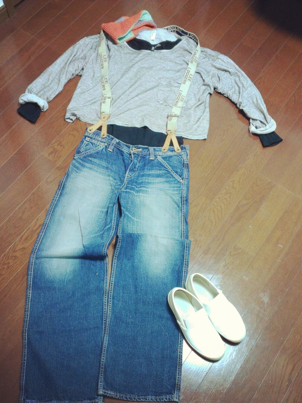 ヘアバンド override カットソー American Apparel インナー H&M デニム&サスペンダー Lee 靴 bulle de sabon
