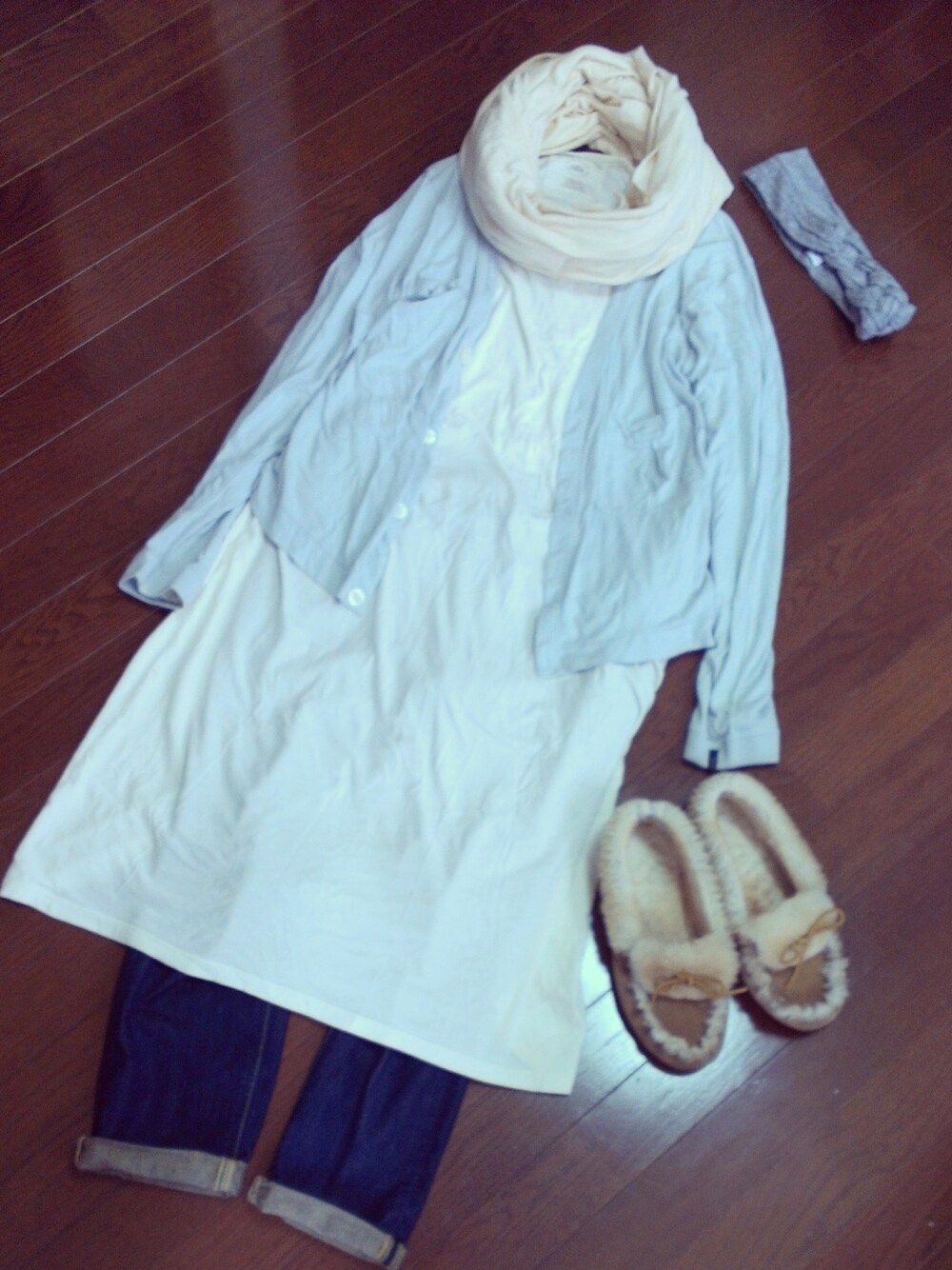 ヘアバンド カオリノモリ スヌード American Apparel ワンピース gelato pique カーディガン URBAN RESERCH デニム Lee 靴 MINNETONKA ヘアバンドは3色買いした名作☆★☆ はやく薄着で出掛けたい。