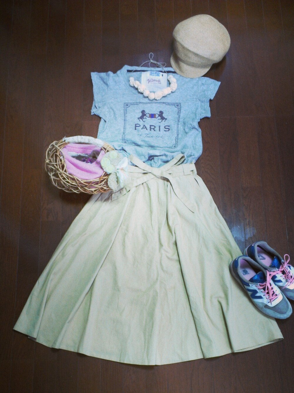スカートはだいぶ昔に購入した古着です。 YOSHIKOのバッグは小さいのでなかなか出番がないですが、持ってるだけ、見てるだけで幸せです。笑 カオリノモリの夏の定番キャスケットは超優秀アイテムなのでとてもおすすめです:-)