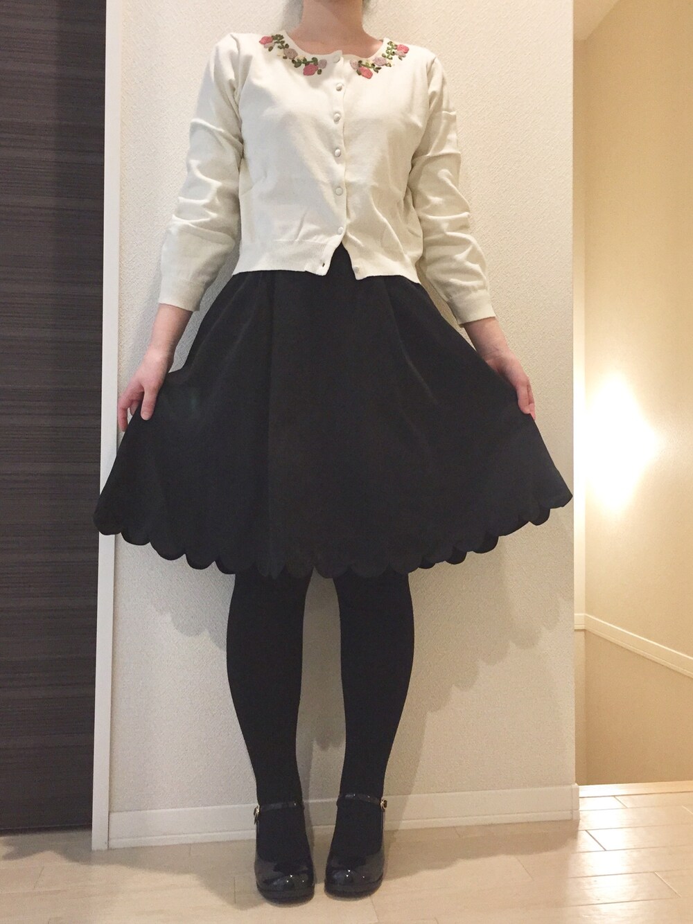 fintで新しいカーデを購入しました♡ お花の刺繍がかわいくてお店で見て即決! この春は活躍してくれそうです。 今まで履いていたエナメルの黒パンプスが壊れたので 一緒にパンプスも買ってしまいました〜 幅広でヒールがしっかりしていてfintのお靴は大好きです。