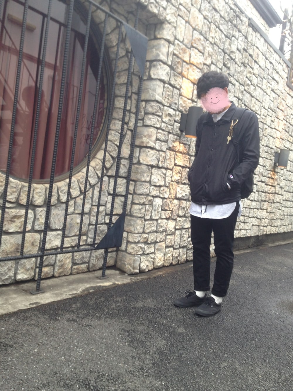 どうも!! 三回目の投稿です(*^^*) 今日は肌寒い日だったのでコーチジャケットを着ました(笑) コーチジャケットに白のロングシャツを着て黒のパンツを合わせました(^ ^) そしてパンツをロールアップして白の靴下にスニーカーを履き、スポーティーなモノトーンコーデにしてみました!!笑 普段仕事で出かけられないから今日は久しぶりに彼女と出かけて買い物ができました(笑) まあどうでもいいはなしですが、、、、笑 まあこんな感じで気軽にコメントしていただけたら嬉しいです(*^^*) ではまた頑張って投稿できるように努力します(^ω^) では(^o^)/!!