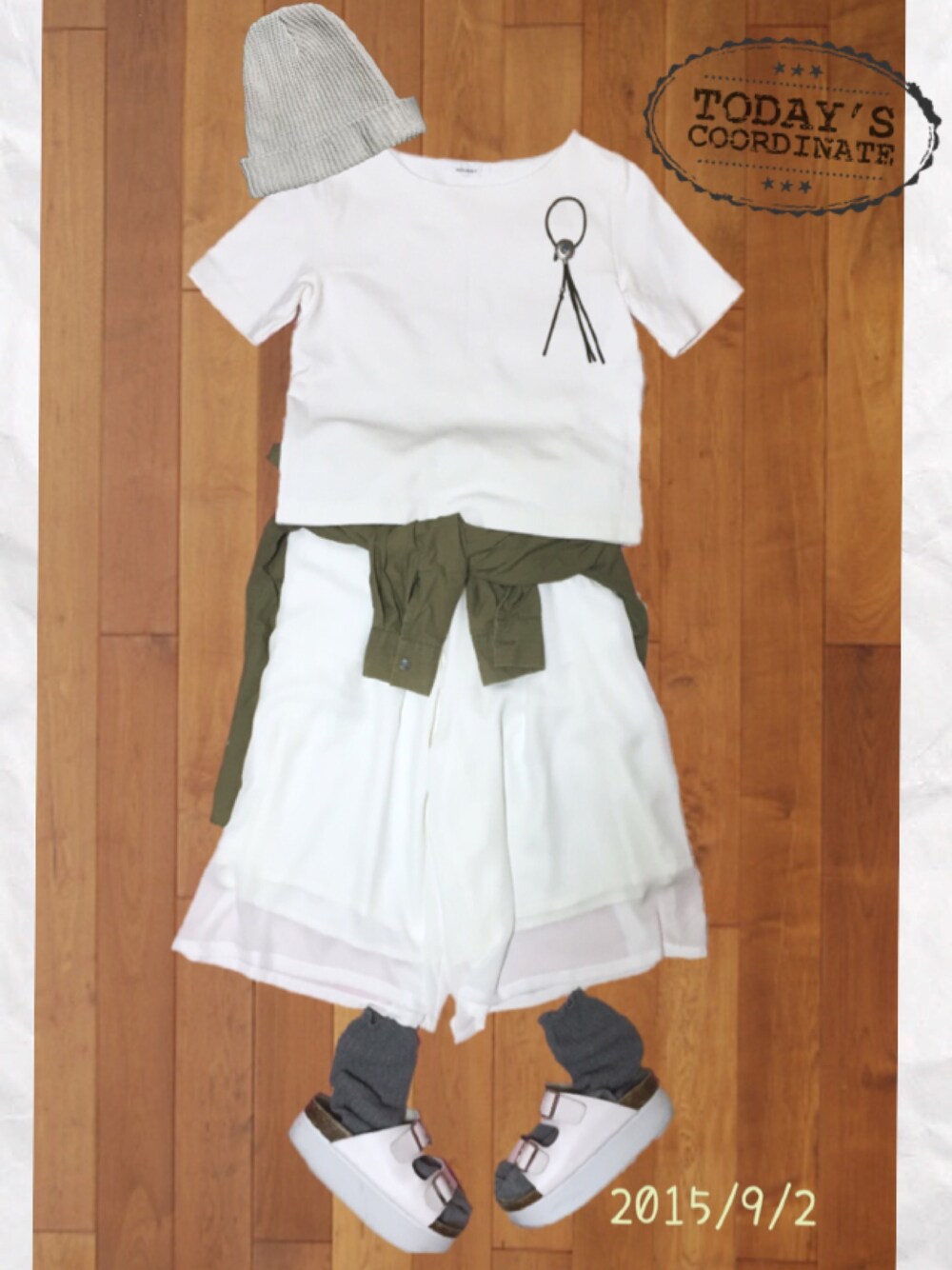 オールホワイトにグレーとカーキを差す!