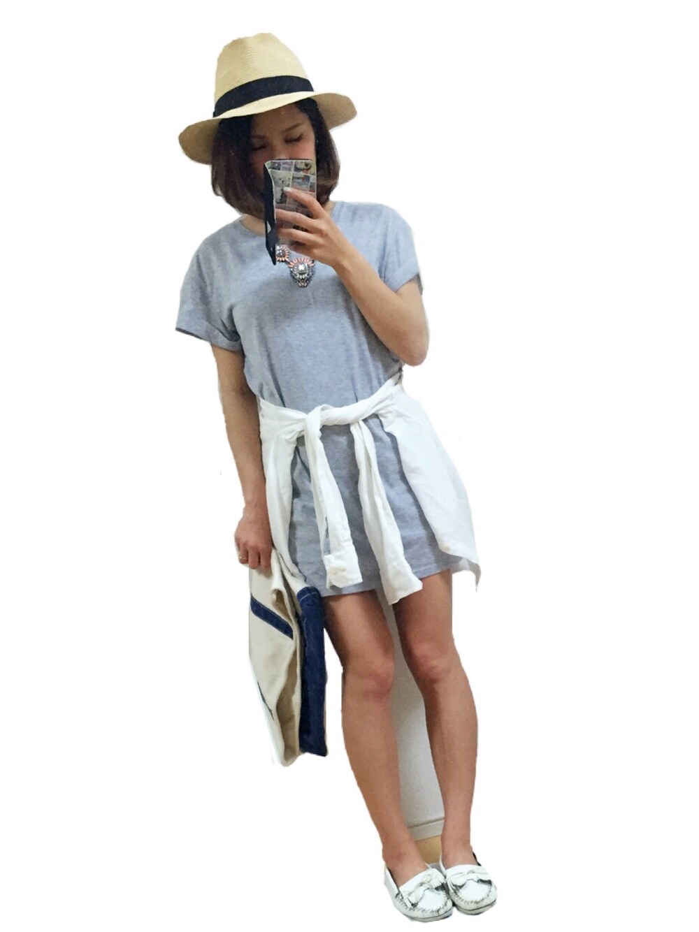 グレーと白でまとめた爽やかコーデ♪ このH&Mのワンピは去年から着てる♪ 妊婦になってもラフに可愛く着れるから好き♡