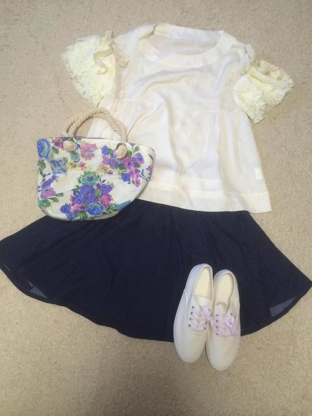 真っ白なスニーカーをGUでゲットしました! 梅雨だからしばらくはけないかなぁ。。 トップは袖がレースです(=´∀`)