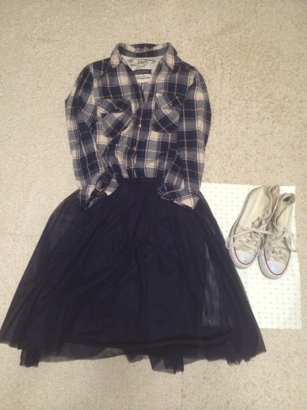 チュールスカートにスニーカーで甘辛ミックス(^^) スカートはネイビーです!