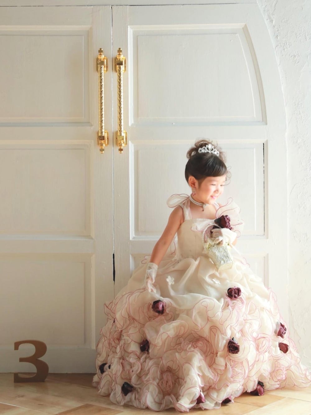 ホワイト系のドレスを着用したキッズの秋コーディネートの1枚目の写真