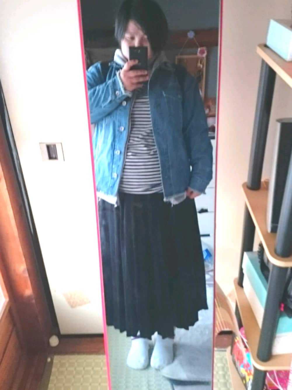 おはようございます! いつも見ていただきありがとうございます♥ 昨日は1日スーツだったので、コーデをあげられませんでした…(´・ω・`) 今日はWclosetのGジャンが着たくて中にパーカーを着込みました。 このパーカーが裏起毛であったかい😻 以前ディズニーに行くのに買ったものですが、今季は愛用します(`・ω・´*) あとはベロアの黒スカート。春あたりまでしか着れない代物なので、今のうちにいっぱい着ようと思います笑