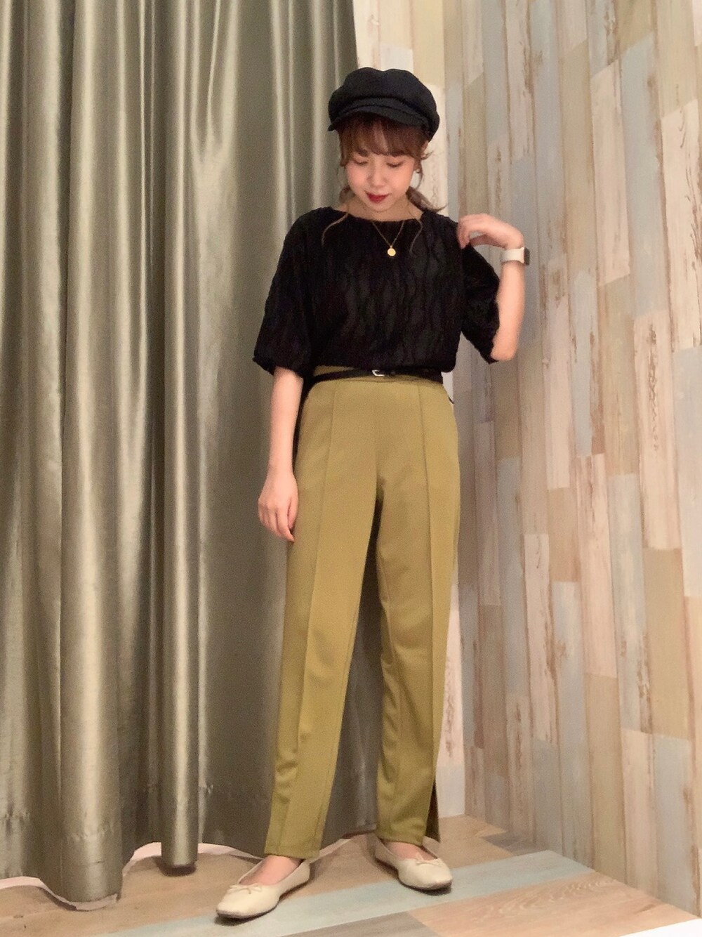 トップスは柔らかい素材で着やすく、透け感があるのでインナーが必要です! パンツはウエストがゴムなので楽にはいていただけます! マリンキャップをプラスして、ちょっと大人なコーデ!