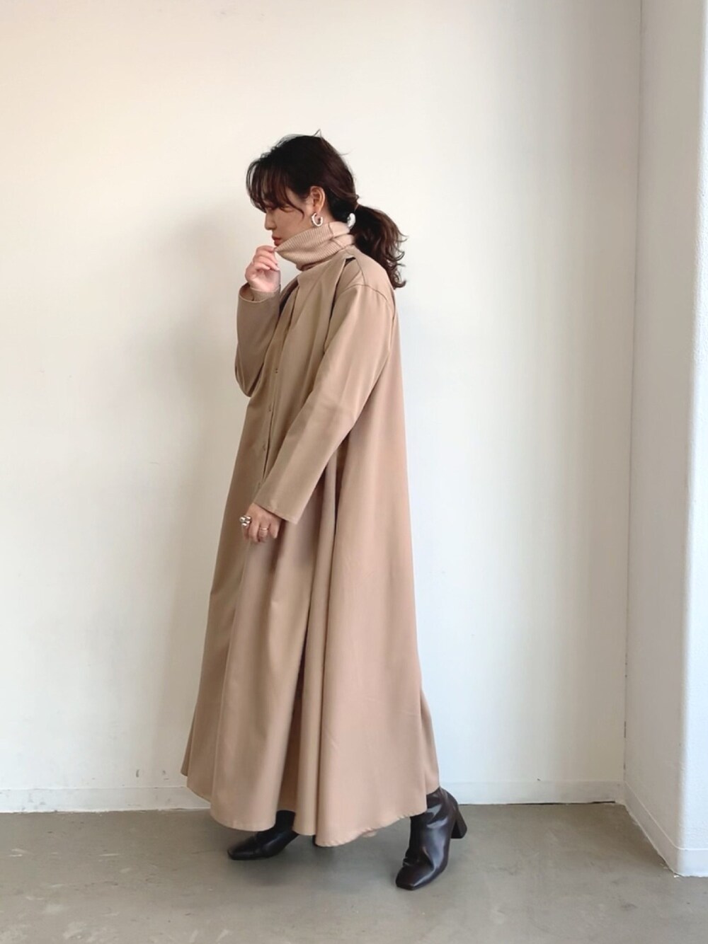 Libra Cue_abeのワンピース「Aラインタックコートワンピース」を使ったコーディネート