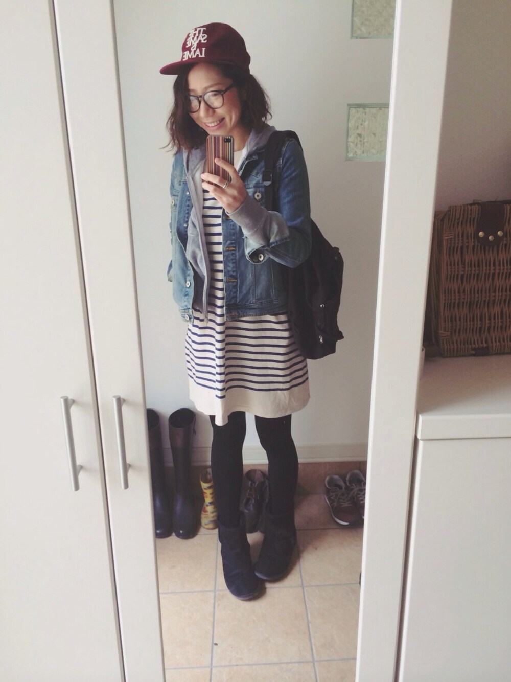ワンピース→無印良品 パーカー→UNIQLO Gジャン→AFRICATARO キャップ→UNIQLO リュック→無印良品 久しぶりのムートンブーツ☆ そしてこれまたいつの〜?!っていうGジャン引っ張りだしてきました。 ストレッチがきいてて着心地がいいので、これを機会に復活させますw