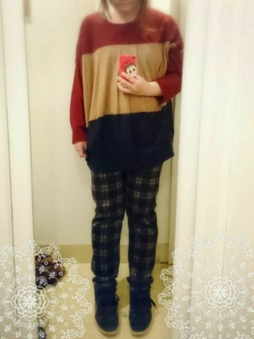 ぴよりあのその他パンツ「裏起毛チェックパンツ(紺)」を使ったコーディネート
