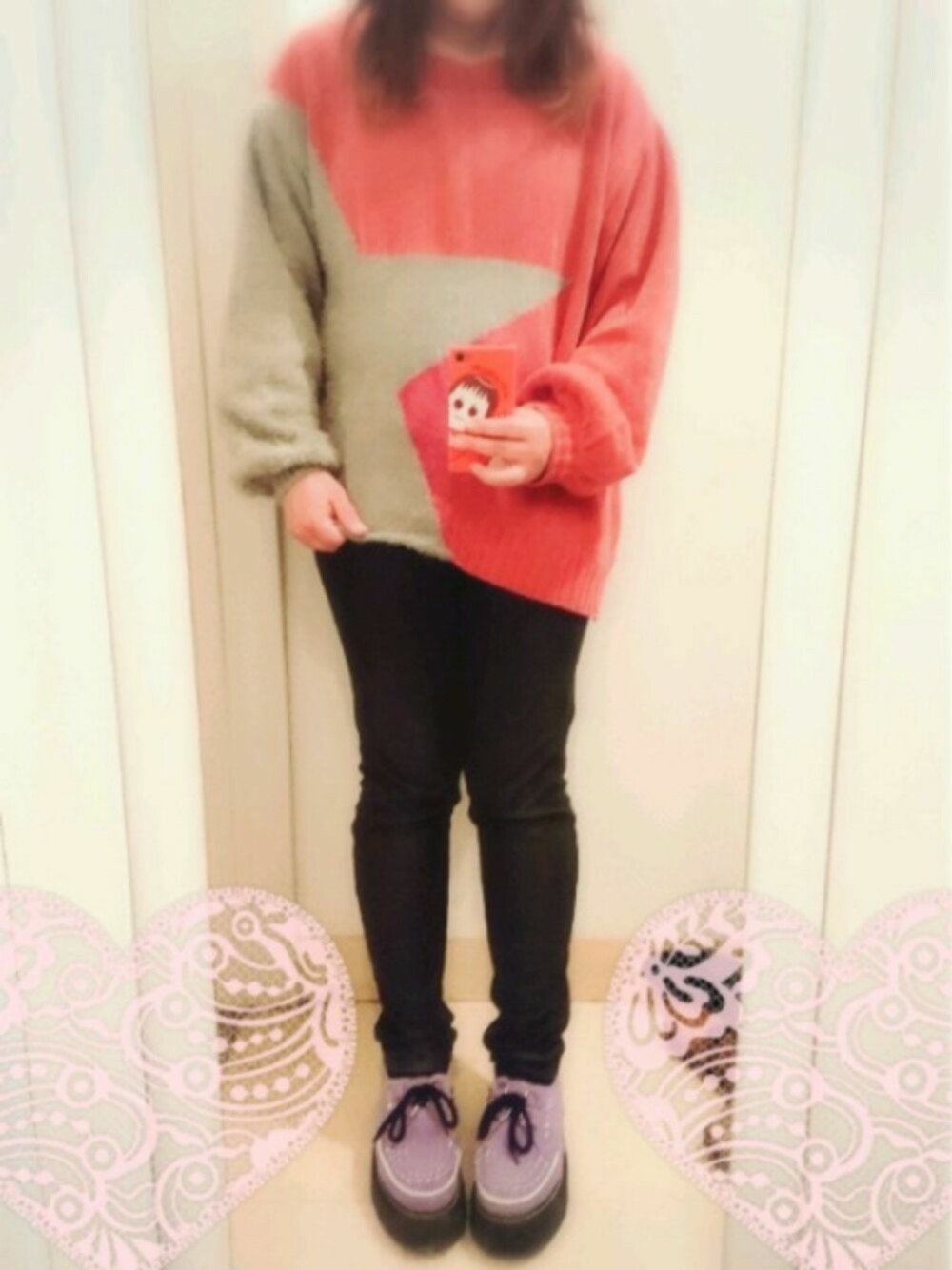 ぴよりあのニット/セーター「スター切り替え変形ニット」を使ったコーディネート