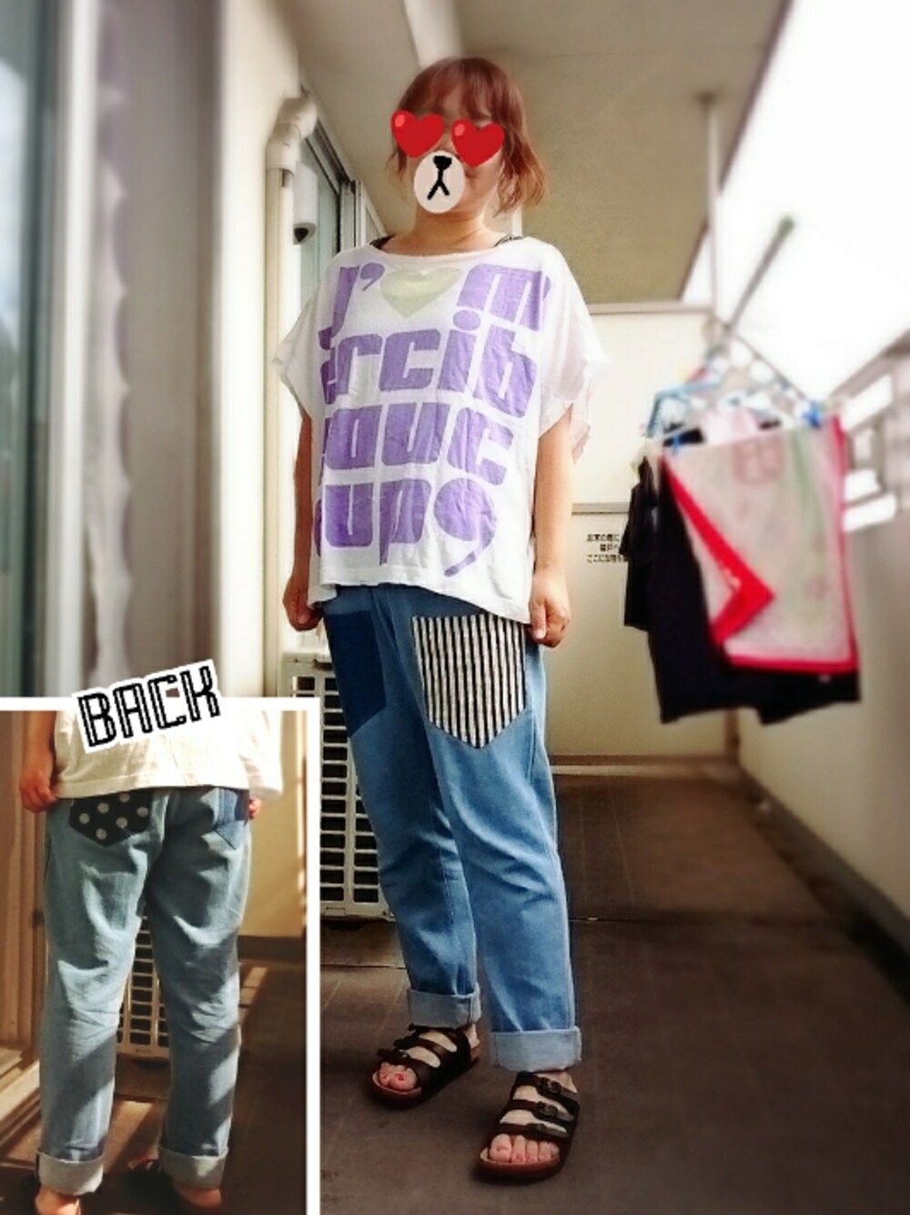 今日は午前中子連れお出かけの予定でしたが 朝から引っ越しのダンボールが届いたり 風が強かったりいろいろありでやめて 本日もまったり日…と言いたいところですが 引っ越しに向けての片付け日にしました┏○ なので今日もまったりゆるコーデ… ポケットがかわいいデニムパンツは古着屋で500円\(^o^)/ 試着したらウエストのボタンが 弾け飛ぶというハプニングもありましたが 手芸屋で買ったジーンズ用のボタンを 自分で簡単につけることができて復活! (念の為…ボタンが飛んだのは 決してパンツがきつかったからじゃないですよ… まぁ決してゆるくはないけども_| ̄|○← 古着だしもともとボタンが取れそうだったんだと思う… そういうことにしといてください|彡サッ